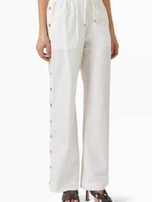 Ivory Zenith Architectural Gold Button Cotton Pants