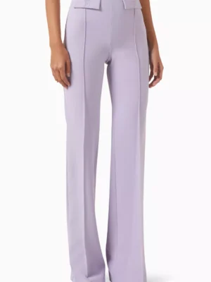A statuesque purple trouser featuring technical crepe tailoring and a refined provocative high-waisted creative silhouette.