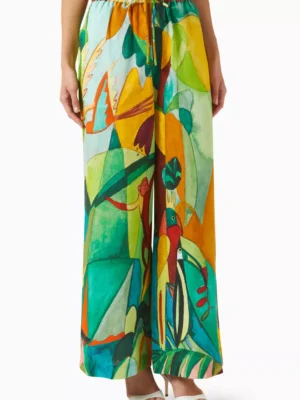 A creative multi color trouser featuring statuesque linen detailing and a refined provocative elasticated creative profile.