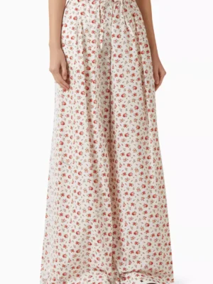 White Monarch Architectural Rose Print Poplin Pants