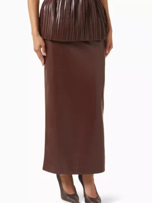 Cocoa Zenith Architectural Eco Leather Maxi Skirt