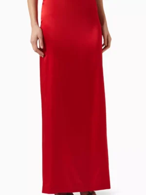 Crimson Zenith Architectural Silk Column Skirt