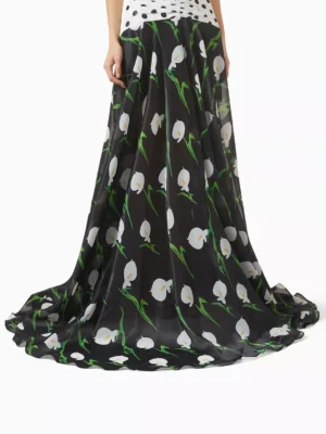 Floral Zenith Architectural Draped Maxi Skirt