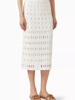 Ivory Zenith Architectural Open Knit Midi Skirt
