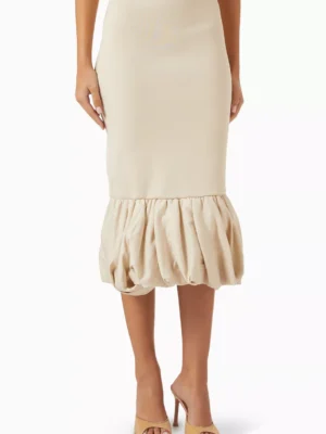 A creative neutral skirt featuring statuesque knit detailing and a refined provocative bubble hem creative profile.