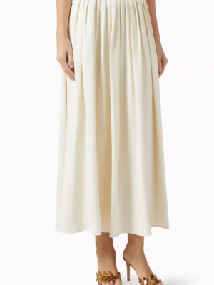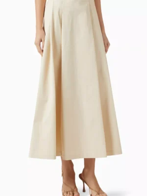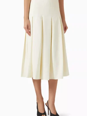 Cream Pleated Midi Skirt