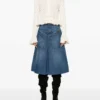 Description: Capture the energetic spirit of modern luxury with the Azure Archive Denim Midi Skirt. Characterized by its unique architectural silhouette and sophisticated blue palette, this piece offers a statuesque and creative take on artisanal summer tailoring. The construction features provocative midi-length elements and a refined technical back slit that ensures a polished aesthetic for high-profile social retreats. Crafted from premium high-density denim with structural integrity and a fluid modern profile, it maintains a sharp and authoritative aesthetic while the precision wash adds a tactile designer edge. Its rich structural dimension serves as a timeless statement of refined luxury.
