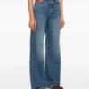 Description: Achieve the peak of effortless luxury with these High-Rise Straight-Leg Jeans. Defined by its radiant azure hue and premium high-fidelity denim fabrication this piece offers an authoritative and creative take on modern archival essential wear. The design features a provocative high-waist profile and structural tailoring that flows into a precision-engineered straight silhouette. Crafted with structural integrity and a technical high-fidelity logo patch it maintains a sharp aesthetic while the classic cut adds a unique designer dimension.