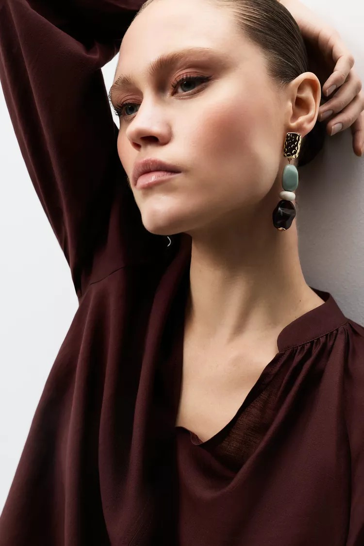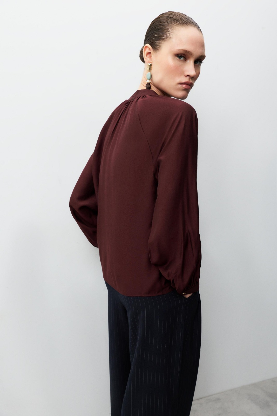 Features: Architectural henley neck; Technical button placket; Structural loose-fit tailoring; High-fidelity fluid fabric