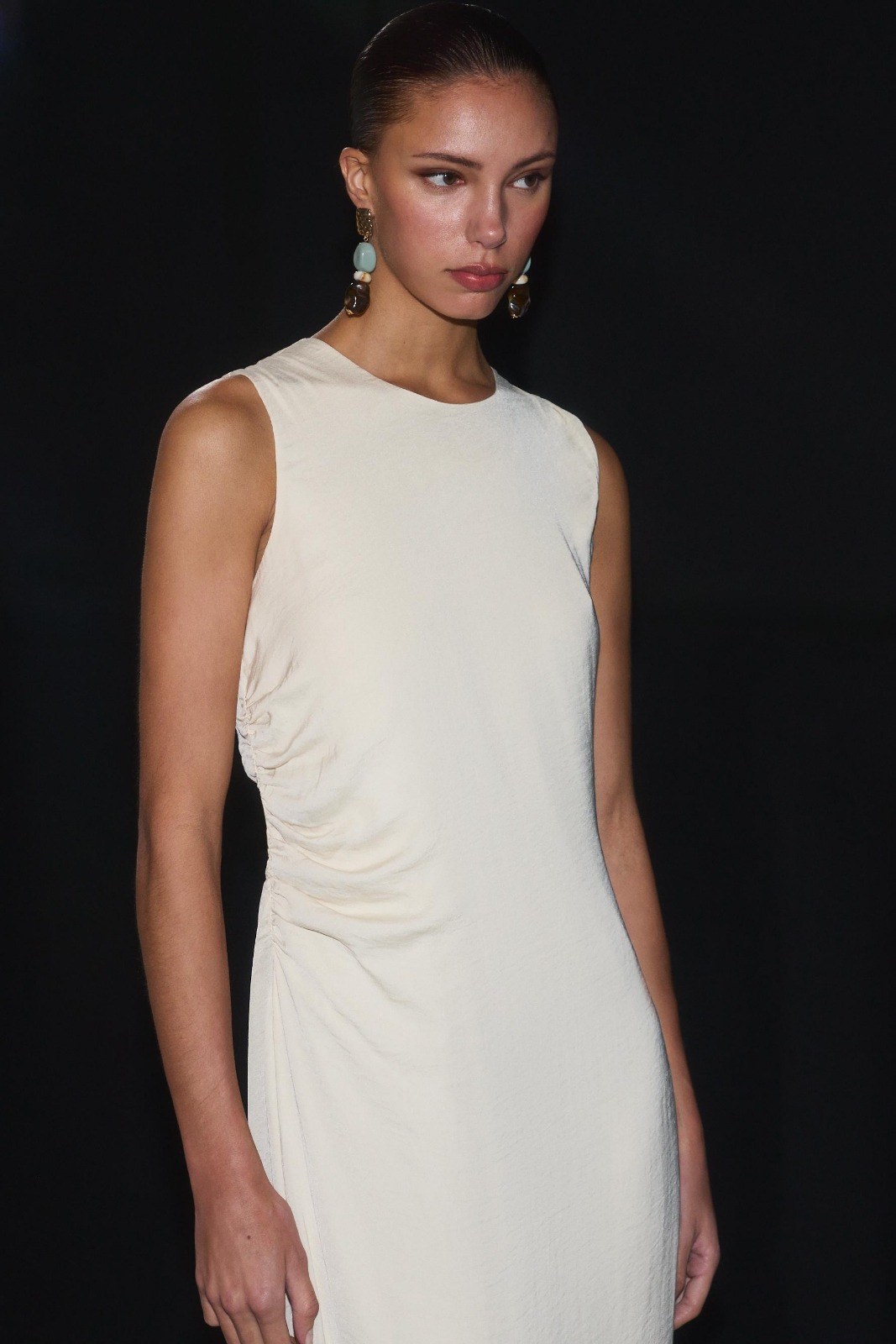 Features: Architectural back split; Technical zipper closure; Structural straight tailoring; High-fidelity textured fabric
