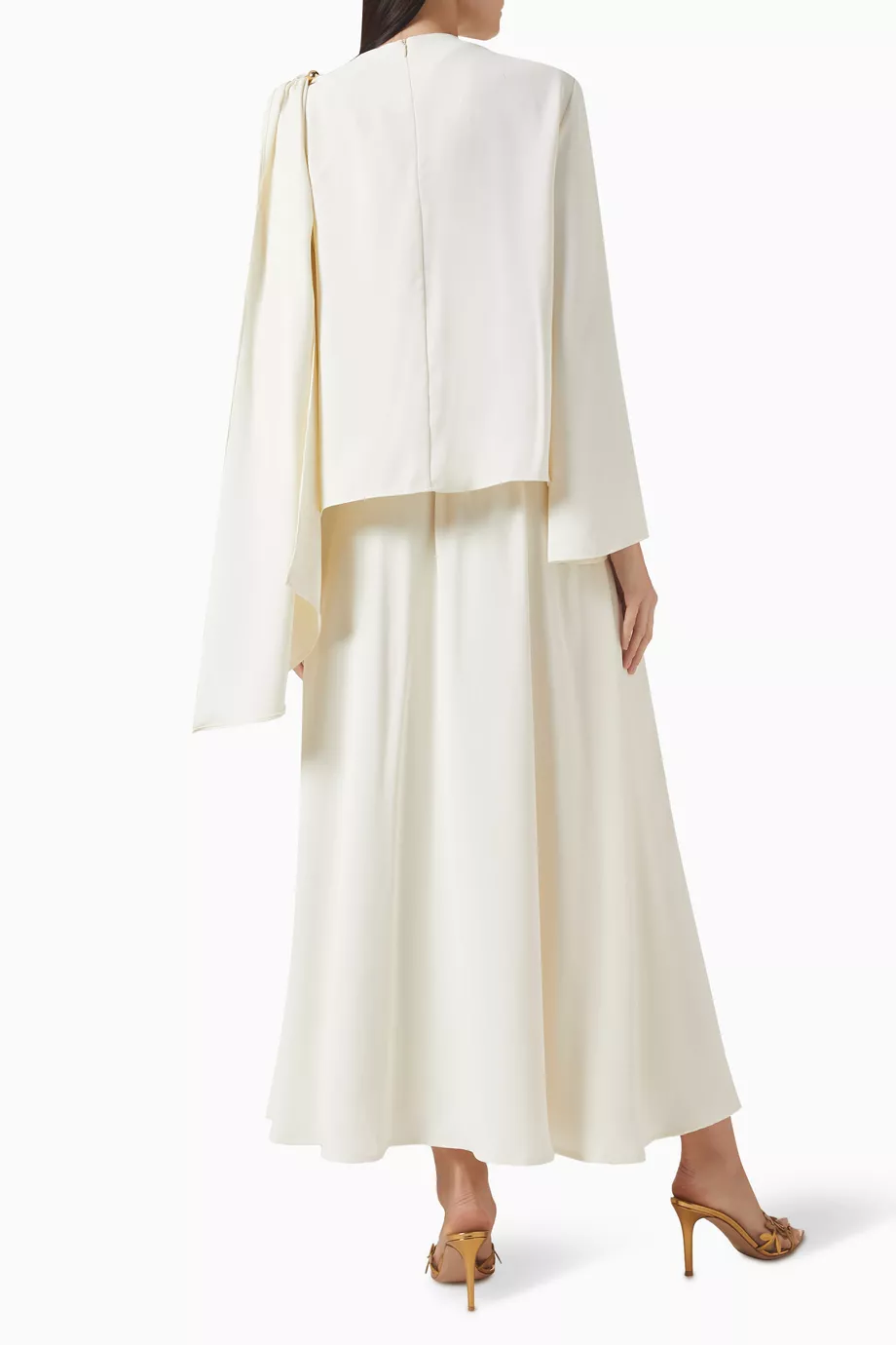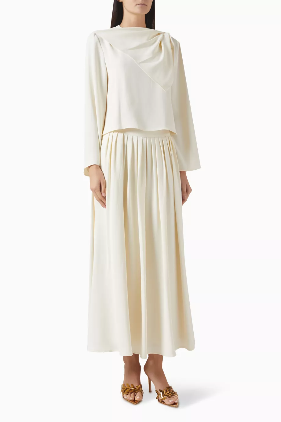 Description: Experience the peak of modern authority with this Draped Pin Skirt Set. Defined by its sophisticated ivory palette and premium high-density fabrication this piece offers a statuesque and creative take on contemporary archival shirting. The construction features provocative draped lines and precision-engineered structural elements that ensure exceptional movement while maintaining a polished designer aesthetic. Crafted with structural integrity and refined occasion-ready ease it serves as a timeless foundational statement for a curated formal collection.