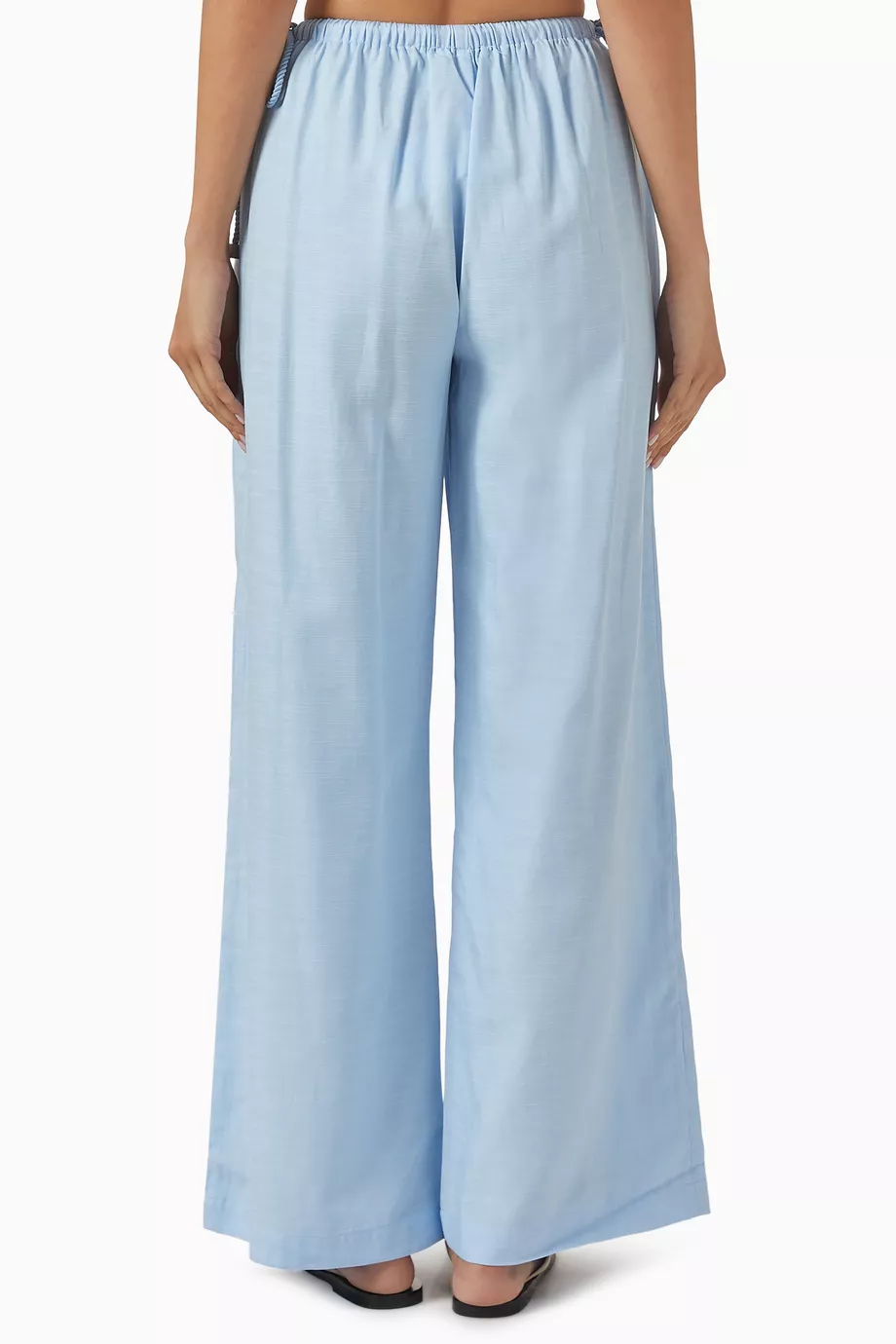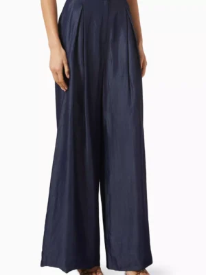 Description: Experience the peak of modern authority with these Fluid Tencel-blend Wide-Leg Pants. Defined by its sophisticated cerulean palette and premium high-density fabrication this piece offers a statuesque and creative take on contemporary archival shirting. The construction features provocative wide-leg lines and precision-engineered structural rope-tie adjustable elements that ensure exceptional movement while maintaining a polished designer aesthetic. Crafted with structural integrity it serves as a timeless foundational statement for a curated resort collection.