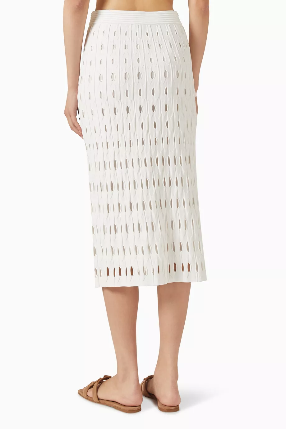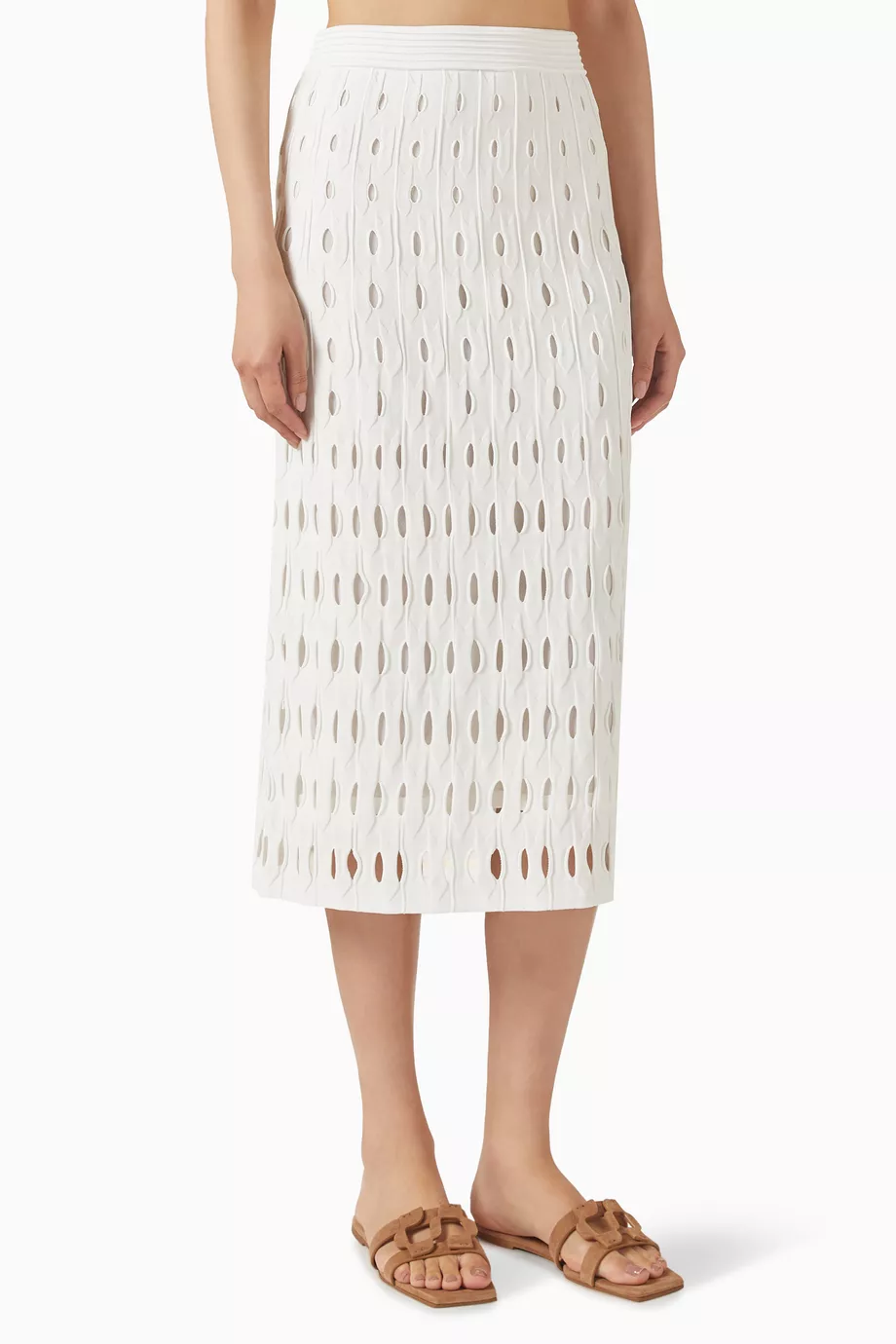 Description: Experience the peak of modern feminine authority with the Ivory Zenith Knit Skirt. Crafted in a premium textured open-knit with a softly structured silhouette, this piece offers a statuesque and creative take on contemporary archival warm-weather dressing. The architectural construction features provocative breathable detailing and a structural stretch waistband that ensures exceptional comfort and ease while maintaining a polished designer aesthetic. Crafted with structural integrity and a technical high-fidelity finish, it serves as a timeless foundational statement for a curated high-fashion skirts wardrobe.