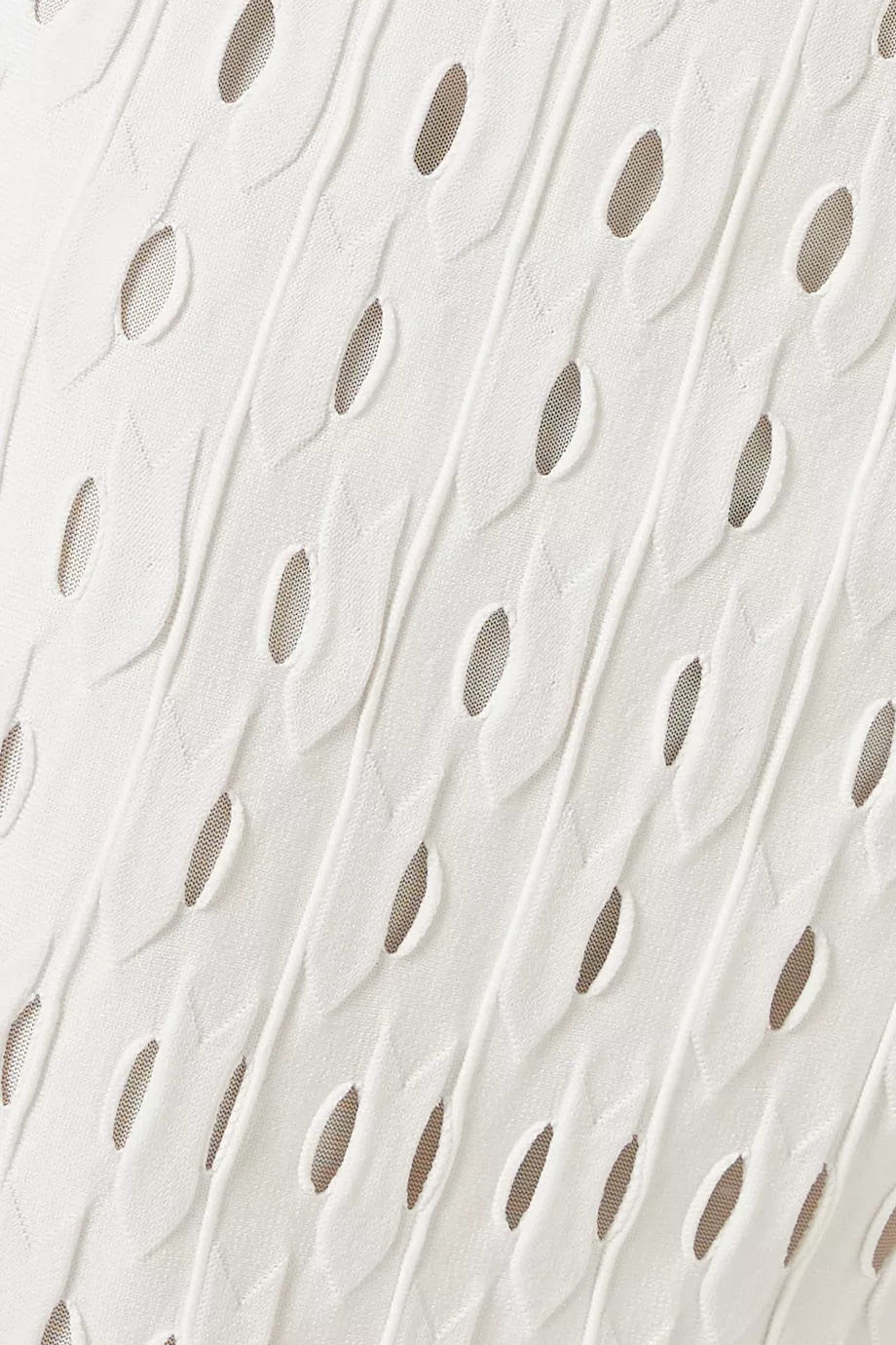 Features: Architectural open-knit; Technical stretch waistband; Structural soft silhouette; High-fidelity breathable fabric