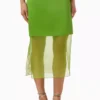 Description: Achieve the peak of effortless high-fashion luxury with the Jade Monarch Satin Skirt. Defined by its radiant green hue and premium high-fidelity crepe satin, this piece offers an authoritative and creative take on modern archival essential wear. The architectural design features provocative double-layered detailing and structural sheer hem elements that flow into a precision-engineered modern silhouette. Crafted with structural integrity and a technical high-fidelity finish, it maintains a sharp aesthetic while the satin fabric adds depth and a unique designer dimension. Its bold structural profile serves as a timeless statement of refined luxury.