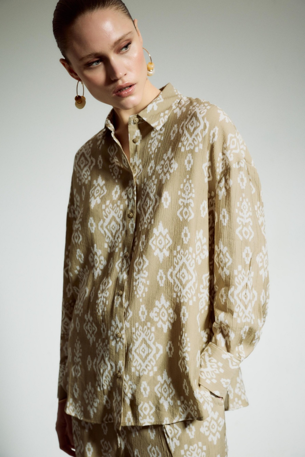 Description: Experience the peak of modern authority with this Long Rustic Fabric Shirt. Defined by its sophisticated pale khaki palette and premium high-density fabrication this piece offers a statuesque and creative take on contemporary archival shirting. The construction features provocative long-line elements and precision-engineered structural lines that ensure exceptional movement while maintaining a polished designer aesthetic. Crafted with structural integrity it serves as a timeless foundational statement for a curated formal collection.