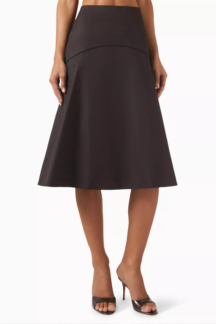 Description: Capture the energetic spirit of modern luxury with this Embroidered Cotton Twill Skirt. Characterized by its unique silhouette and sophisticated mahogany palette this piece offers a statuesque take on artisanal technical tailoring. The construction features provocative tonal embroidery and a refined technical finish that ensures exceptional movement for high-profile social retreats. Crafted from premium high-density fabrication with structural integrity and a fluid modern profile it maintains an authoritative aesthetic while the versatile layout adds a tactile designer edge.