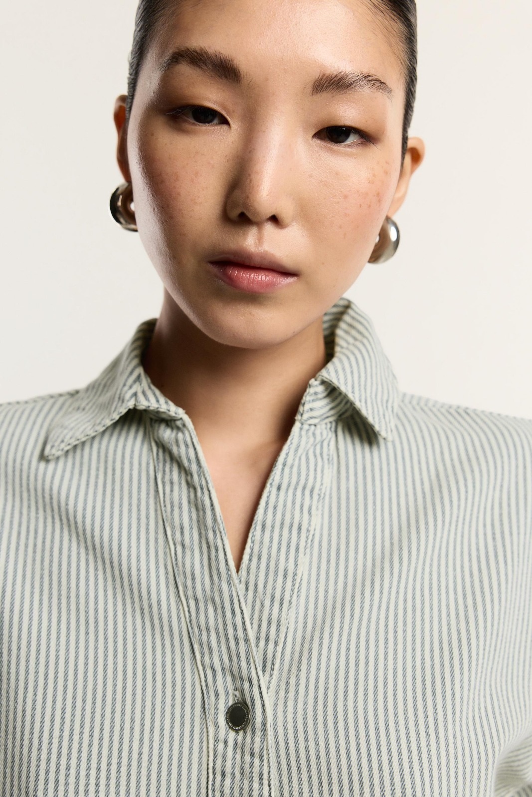 Description: Experience the peak of modern authority with this Striped Cotton Denim Shirt. Defined by its sophisticated beige-yellow multi-toned palette and premium high-density denim fabrication this piece offers a statuesque and creative take on contemporary archival streetwear. The construction features provocative striped lines and precision-engineered structural metal buttons that ensure exceptional movement while maintaining a polished designer aesthetic. Crafted with structural integrity and a specialized V-neck it serves as a timeless foundational statement for a curated formal collection.