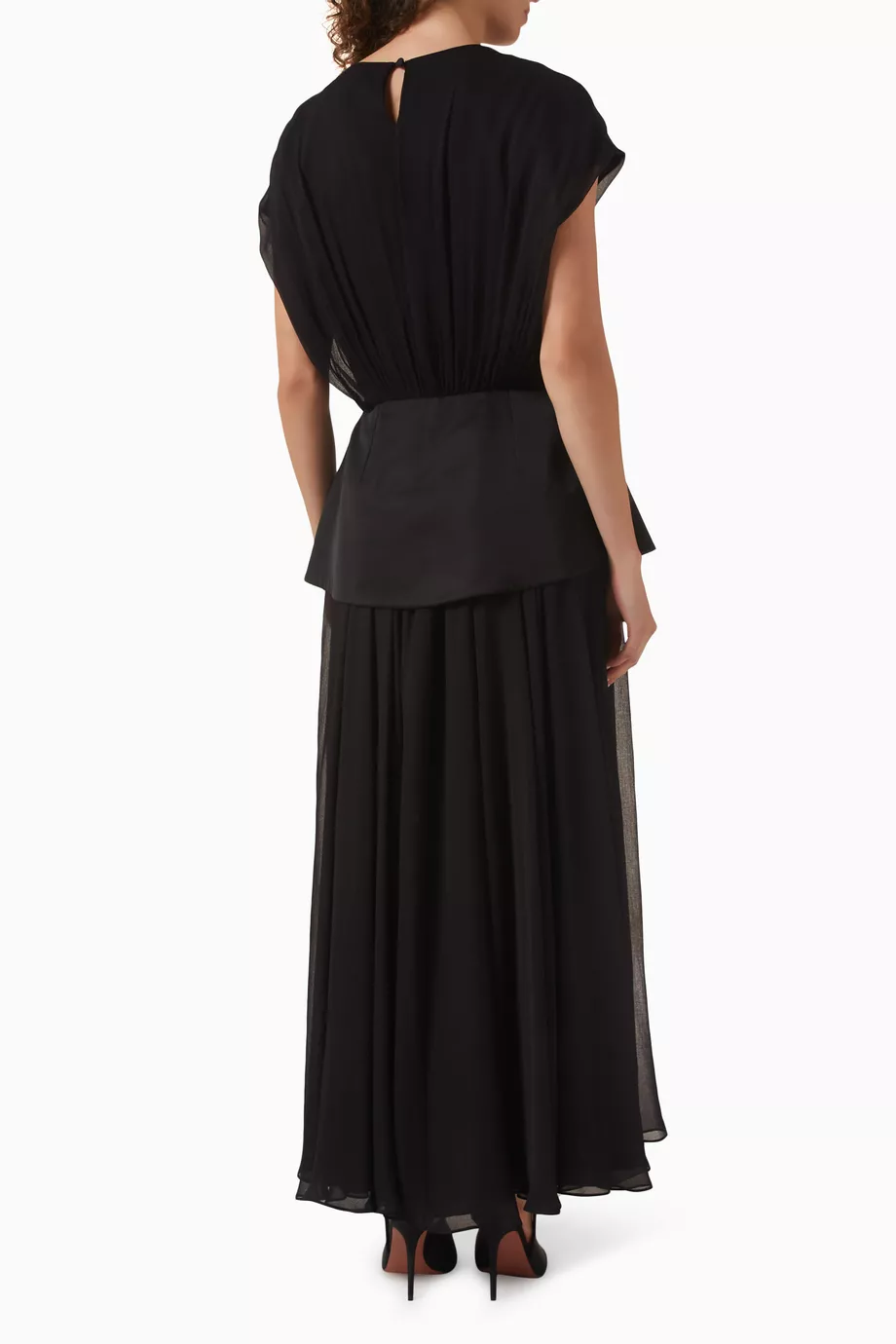 Description: Achieve the peak of effortless luxury with this Peplum Maxi Dress. Defined by its radiant onyx hue and premium high-fidelity chiffon fabrication this piece offers an authoritative and creative take on modern archival resort wear. The design features a provocative peplum profile and structural tailoring that flows into a precision-engineered silhouette featuring a modest flowing layout. Crafted with structural integrity and a technical high-fidelity finish it maintains a sharp aesthetic while the specialized chiffon adds a unique designer dimension. Its bold structural profile serves as a timeless statement of refined luxury.