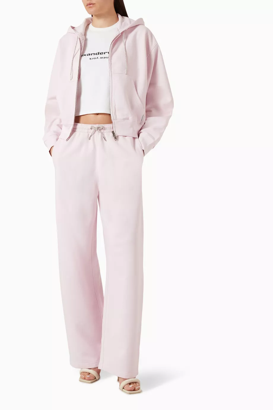Features: Technical cotton fleece; Structural adjustable waist; High-fidelity rhinestone cord; Precision tailored cuffs