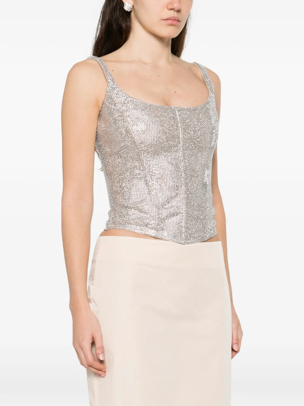 Features: Architectural sequin detail; Precise sleeveless tailoring; Structural evening profile; High-fidelity finish