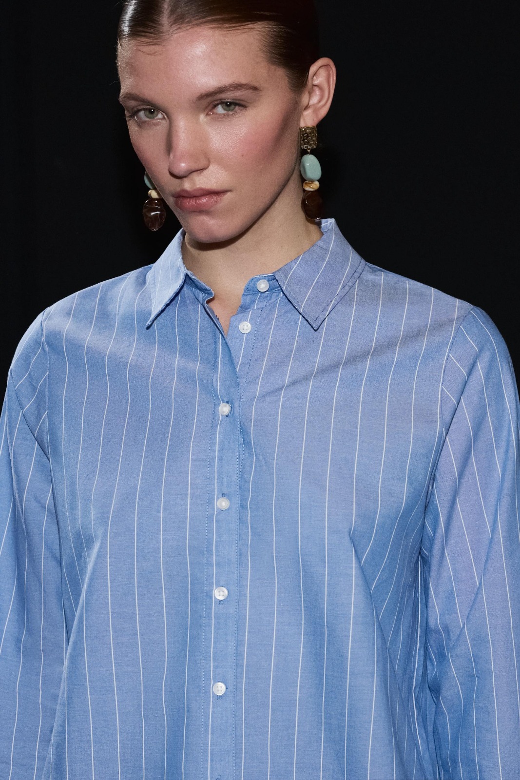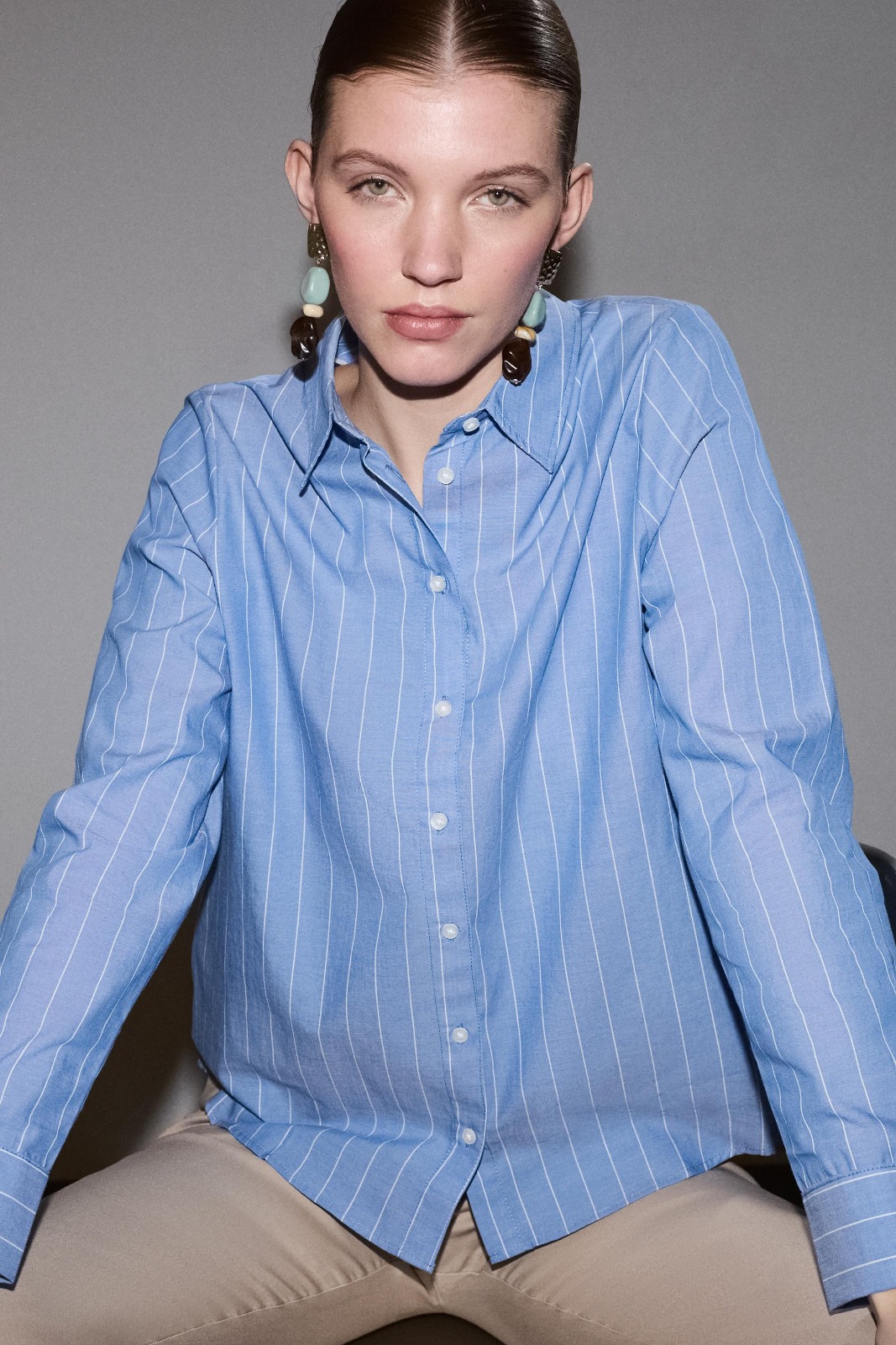 Description: Experience the peak of modern feminine authority with the Striped Zenith Poplin Shirt. Defined by its sophisticated striped palette and premium high-density poplin fabric, this piece offers a statuesque and creative take on contemporary archival shirting. The architectural construction features provocative long sleeves and a precision-fitted button-up front that ensures exceptional movement while maintaining a polished designer aesthetic. Crafted with structural integrity and a technical straight-cut profile, it serves as a timeless foundational statement for a curated high-fashion shirts wardrobe.