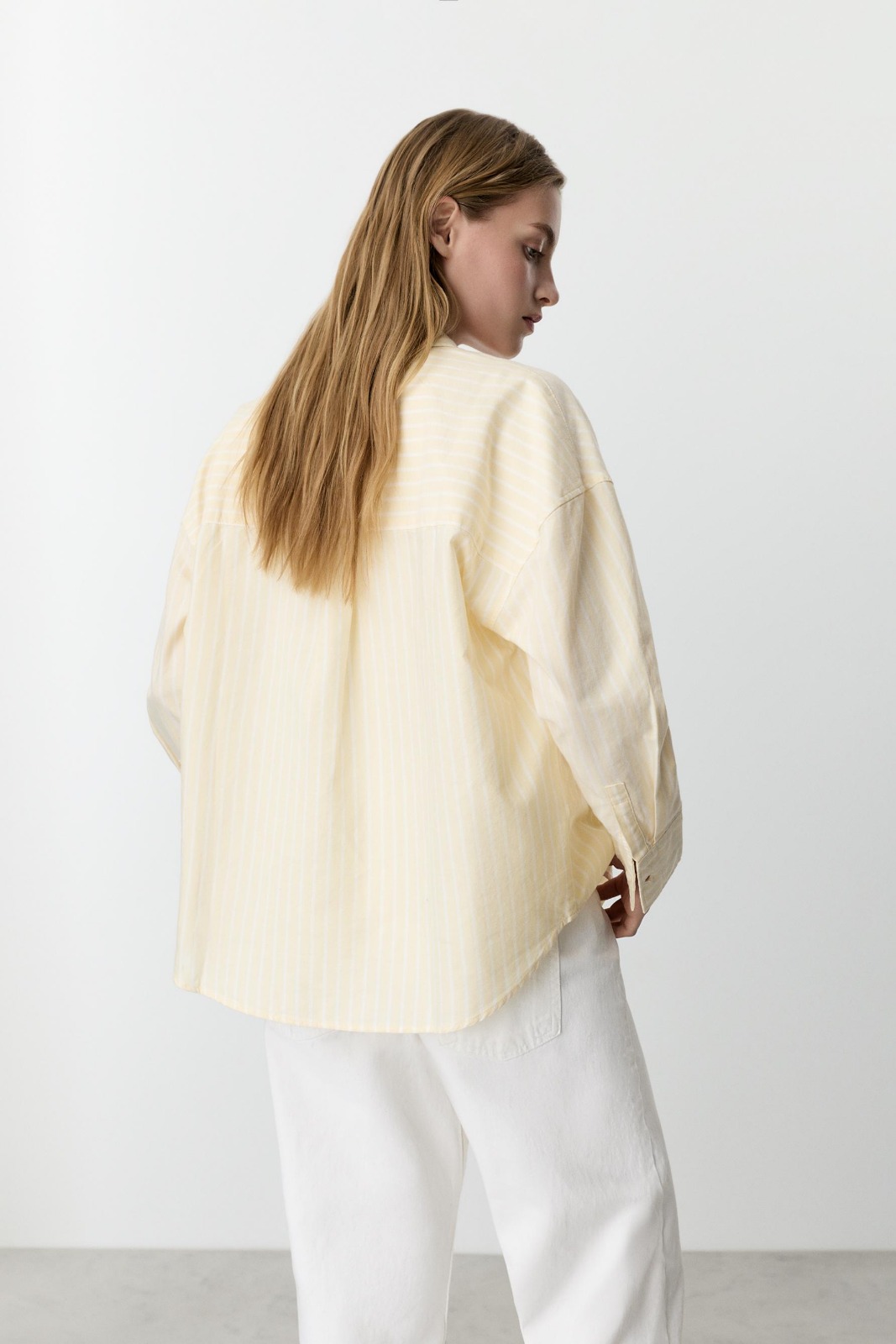 Features: Architectural shirt collar; Technical button closure; Structural loose-fit profile; High-fidelity Oxford cotton