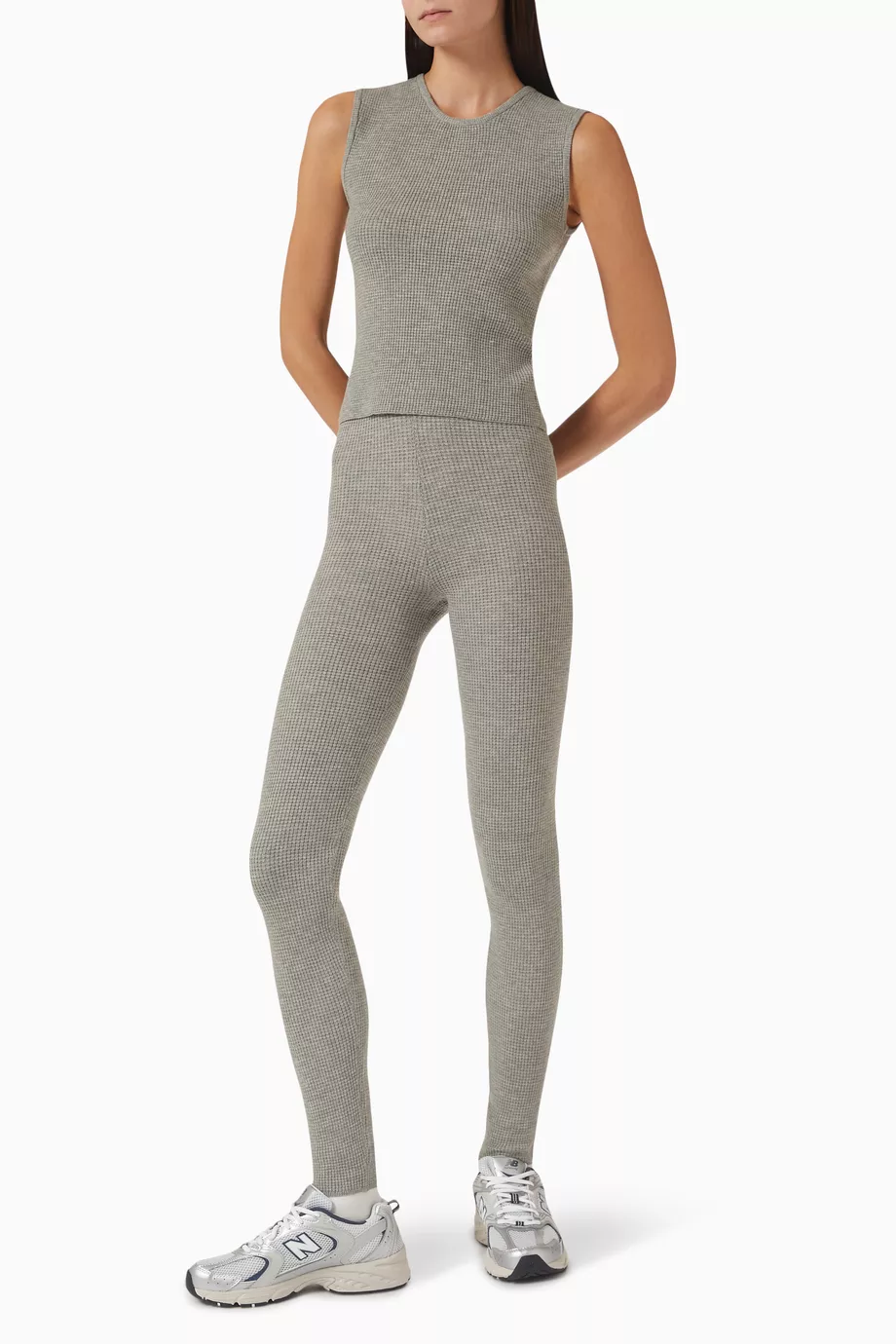 Description: Capture the energetic spirit of modern luxury with these Slim-Fit Waffle-Knit Leggings. Characterized by its unique silhouette and sophisticated graphite palette this piece offers a statuesque take on artisanal technical layering. The construction features provocative waffle-knit elements and a refined technical finish that ensures exceptional movement for high-profile social retreats. Crafted from premium high-density fabrication with structural integrity and a fluid modern profile it maintains an authoritative aesthetic while the contouring fit adds a tactile designer edge.